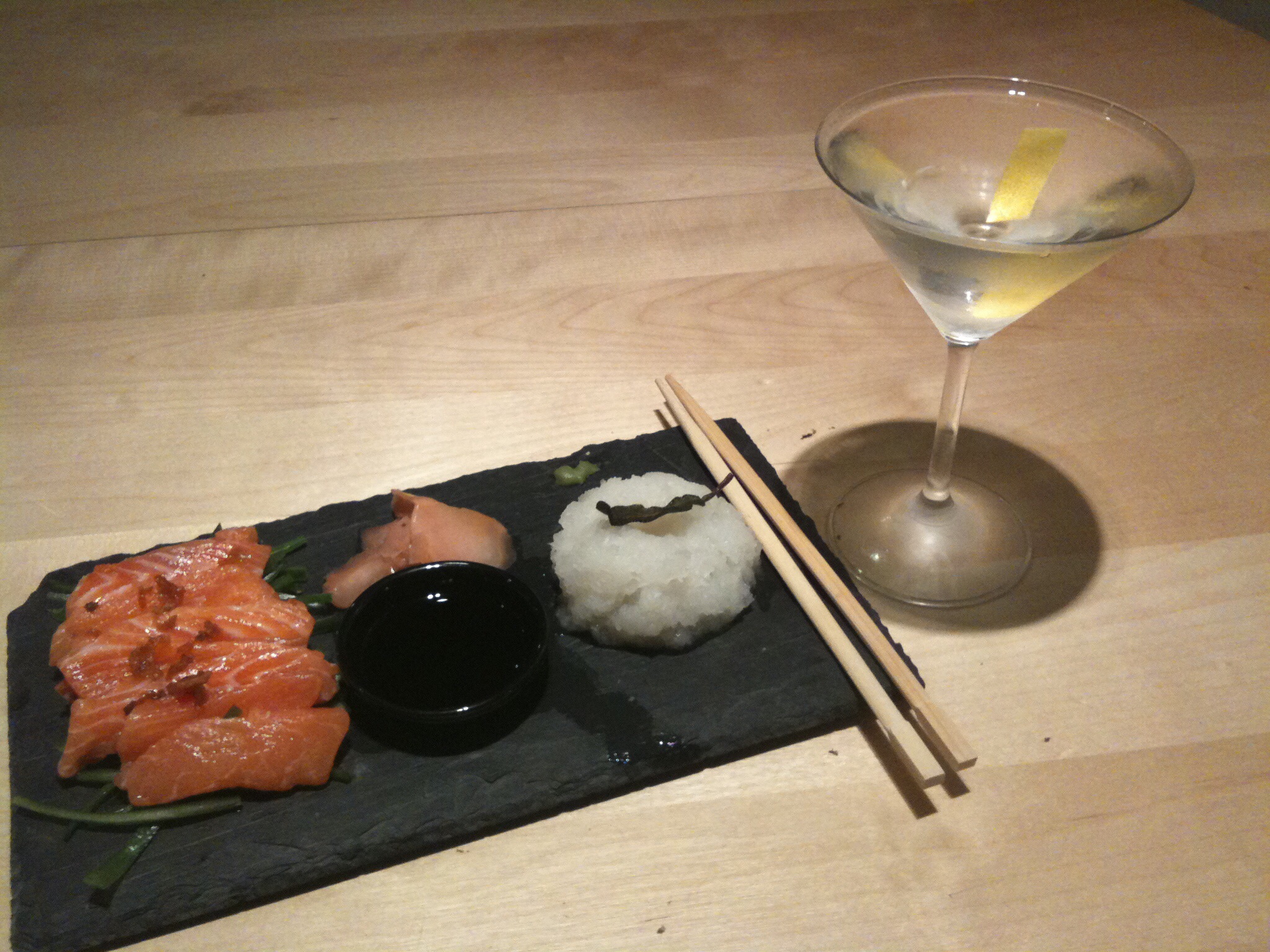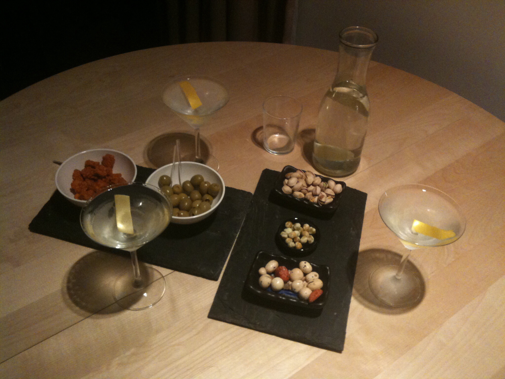 Small bites that you might otherwise serve as a starter work well if you’re feeling fancy. I like to keep the martini ceremony simple and relaxed but if you want to make an impression you could serve all manner of home prepared dishes, such as grilled skewers, sushi, sashimi (any fresh seafood actually), blinis etc. To be honest, it’s still a big experiment for me. As I said, I like it to be simple so I can relax and actually enjoy the drink, but you should be able to try out all sorts of things. It will also likely depend on your expected company, which is another key element of the perfect martini.