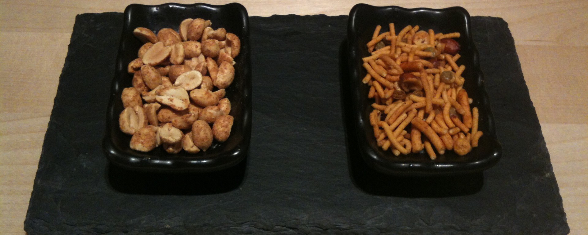 Martinis should ideally be served with snacks to compliment the strong, icy flavour of the drink.