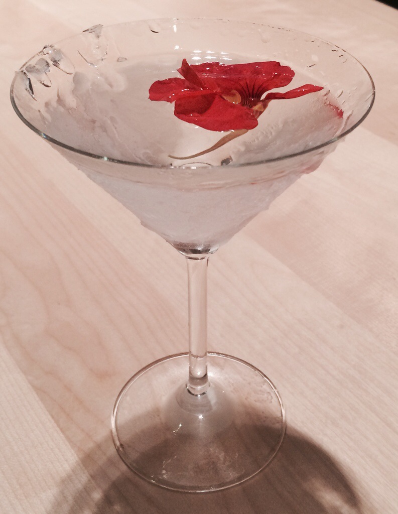 I then added vermouth to taste, lemon oil and garnished it with a nasturtium (a fiery, edible flower you can grow in your garden).
