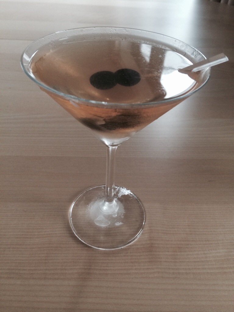 I also made a dirty martini, just with a little olive brine to add a salty taste and whet my appetite before a meal.