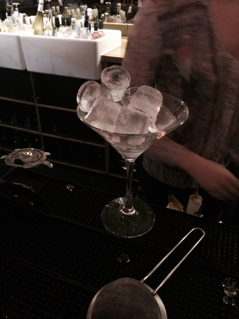 I went to a bar last night where they chilled the martini glass using ice cubes.