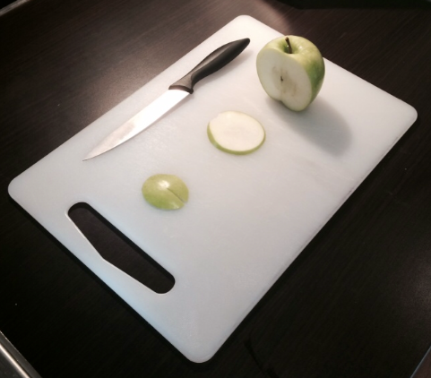 Thinly slice a green apple into round slivers, one for each of the martinis you intend to make. Try to make them as thin as possible so they are flexible, almost like paper, although this is difficult without breaking them.