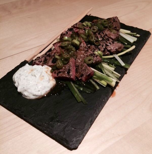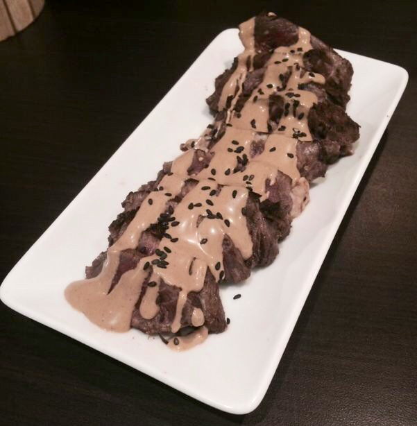 More seared beef, with cucumber and a wasabi-yoghurt dressing.