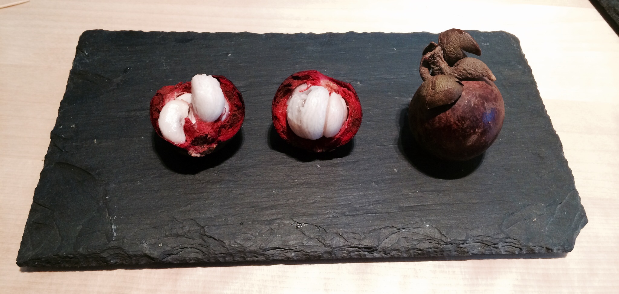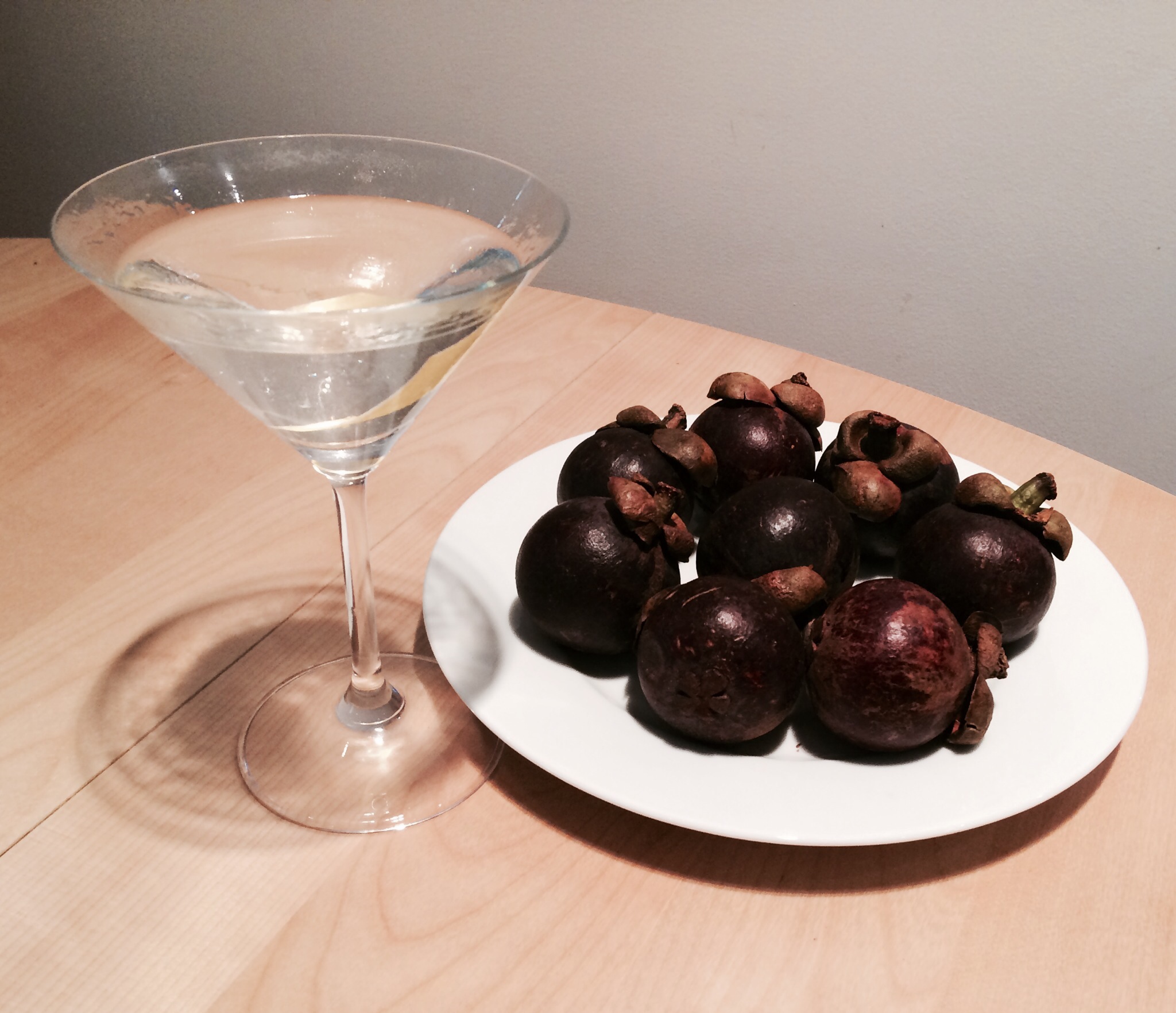 Take a tin of mangoosteen (you can find them in specialist Asian supermarkets), then make the martini as follows (you can alter it to taste):