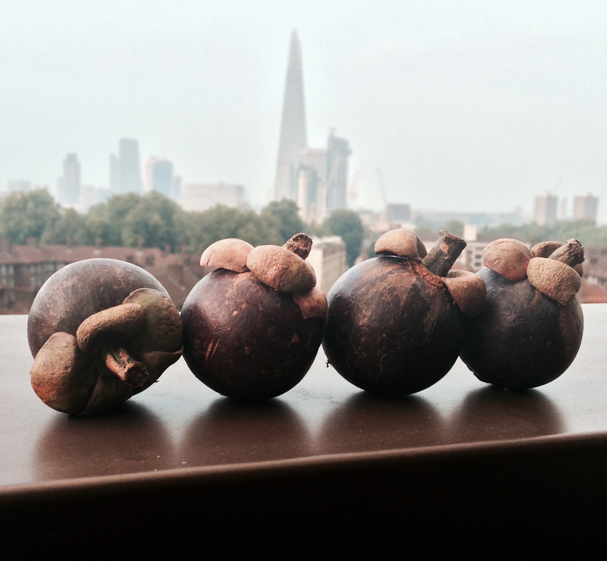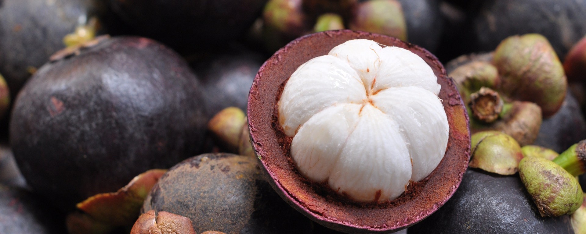 Mangoosteen are an unusual looking tropical fruit with a thick, purple skin and soft, sweet white flesh, similar in taste to a lychee.