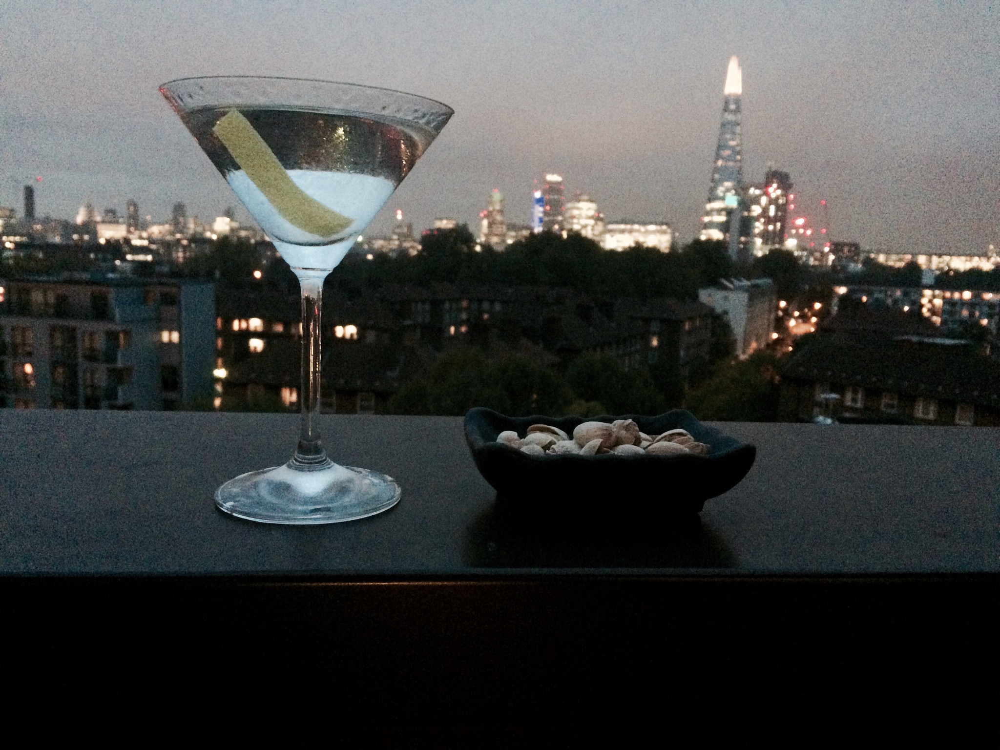 A classic martini, served somewhat unconventionally, with sweet accompaniments.