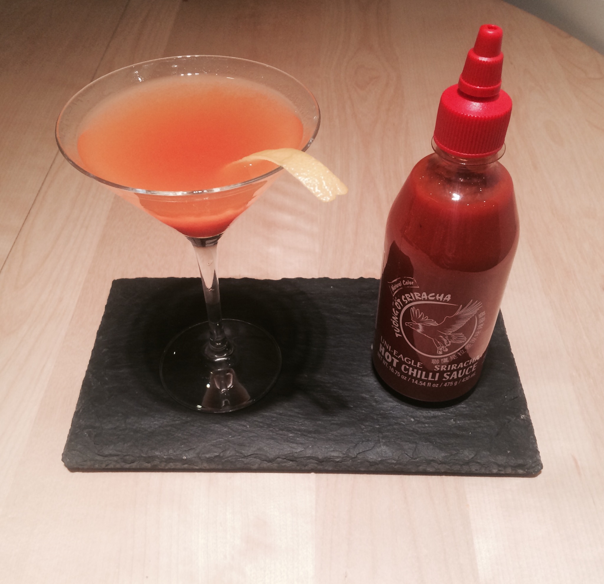 I remarked that I should try and make a martini out of the sauce for him. I have already talked about my love of Sri Lanka so it should come as no surprise that I love spicy food, while I have previously made spicy martinis here, here and here. However, I think my friend was appalled at the suggestion of a Sriracha martini. And perhaps rightly so: you shouldn’t mess with a classic, let alone two.