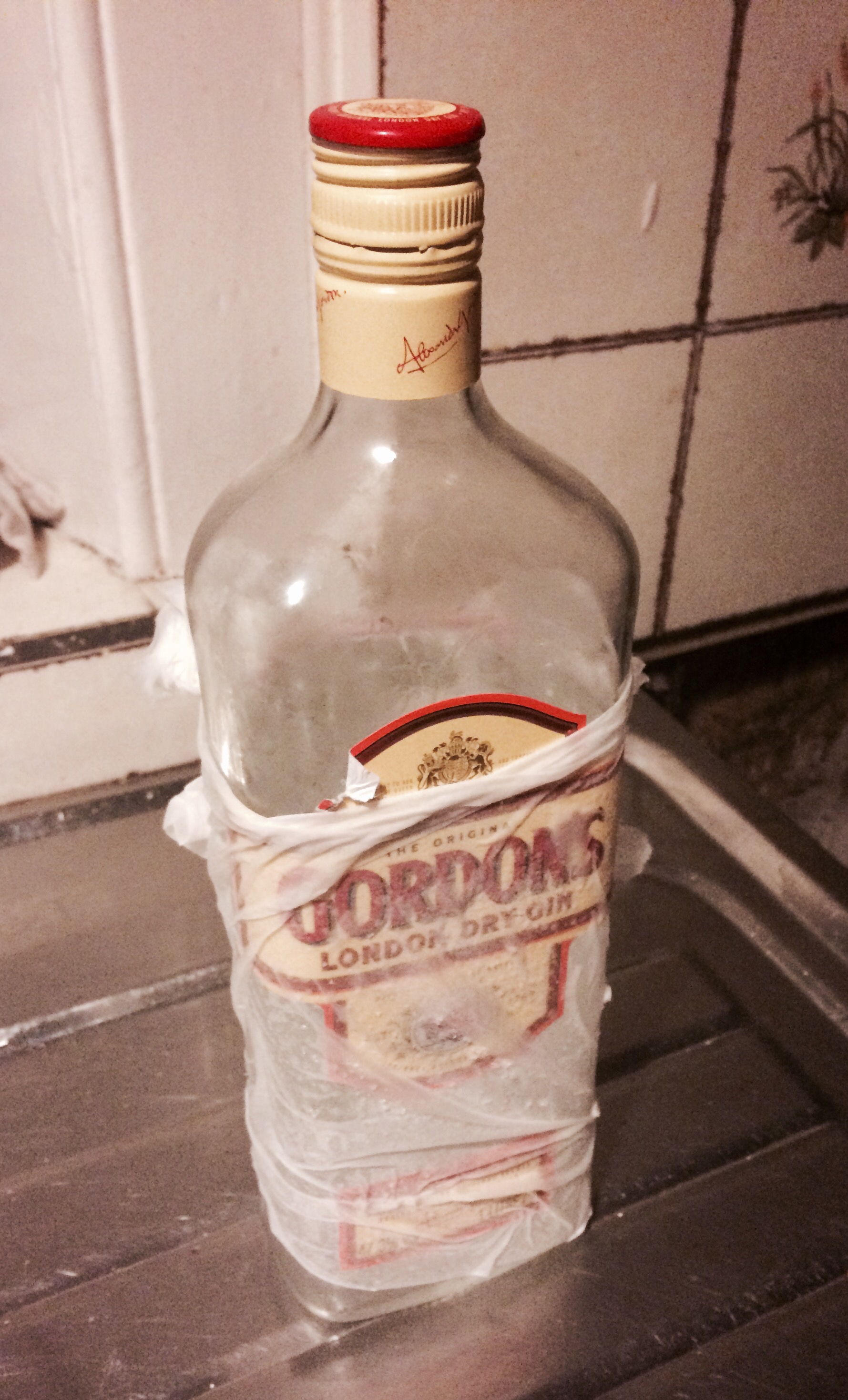 Here is a little tip my brother taught me. If you need to cool down a bottle of gin and you don’t have a lot of time (say an hour or so) don’t panic, you can do the following: