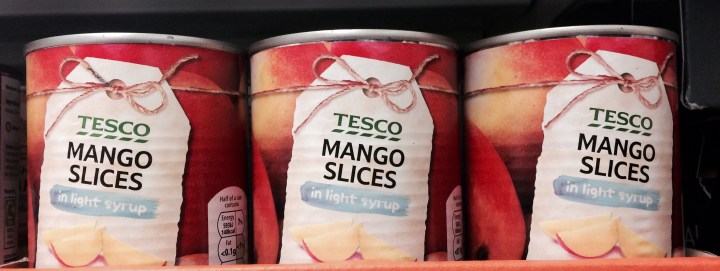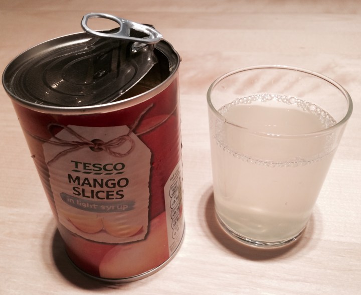 In order to make a mango martini get yourself a tin of mango slices in syrup.