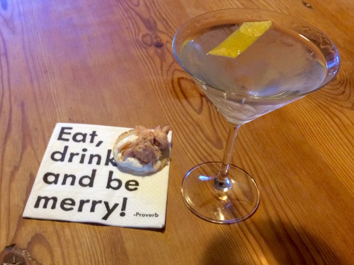 While I would normally encourage making things at home, I saw some miniature blini for sale in the supermarket and decided just to buy them for a martini accompaniment. Otherwise, I have seen several good recipes online. I found this one particularly interesting.