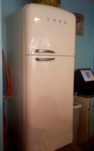 A few moments later, to our surprise, the fridge standing next to the bar opened up and a man stepped out of it. He asked us to join him, so we followed him back into the fridge, through a secret door into a hidden stairway, which led down to a dark, secluded bar with a surprisingly large number of drinkers and a very interesting cocktail menu.