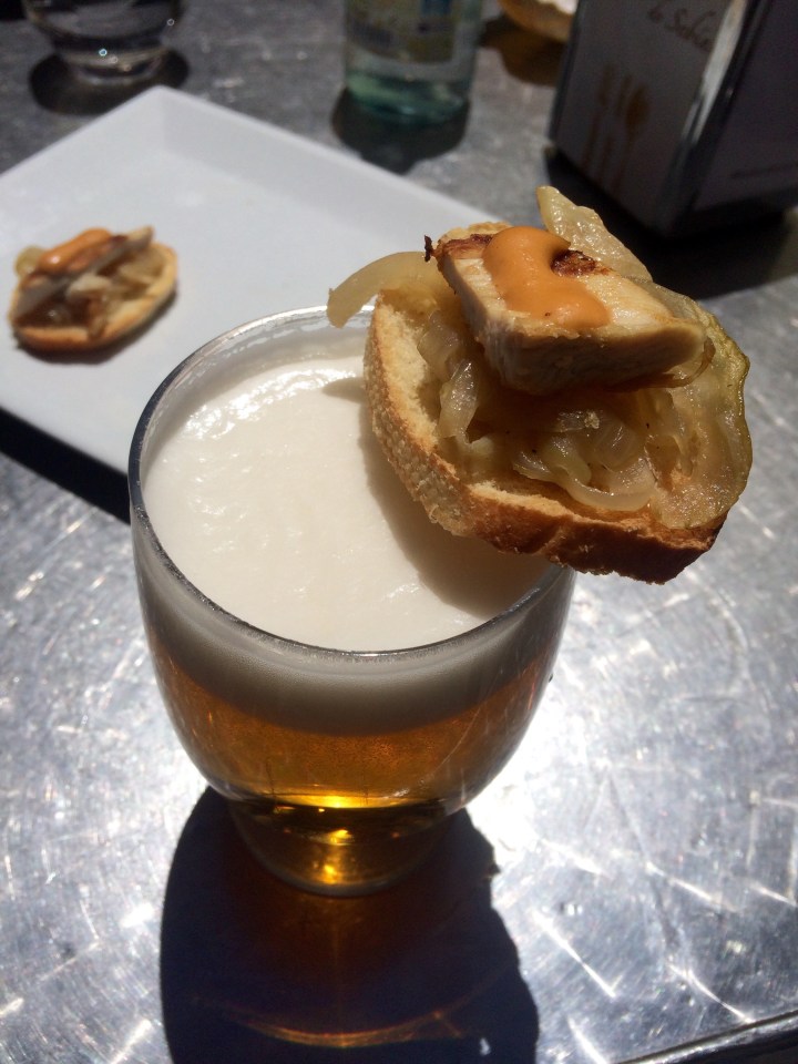 Here is a mind-blowingly tasty assortment of morcilla (a spanish variation of black pudding) with apple, balsamic vinegar glaze and fried potato straws, accompanied with octopus and whole grain mustard ice cream. Yes. Mustard ice cream. Yes.