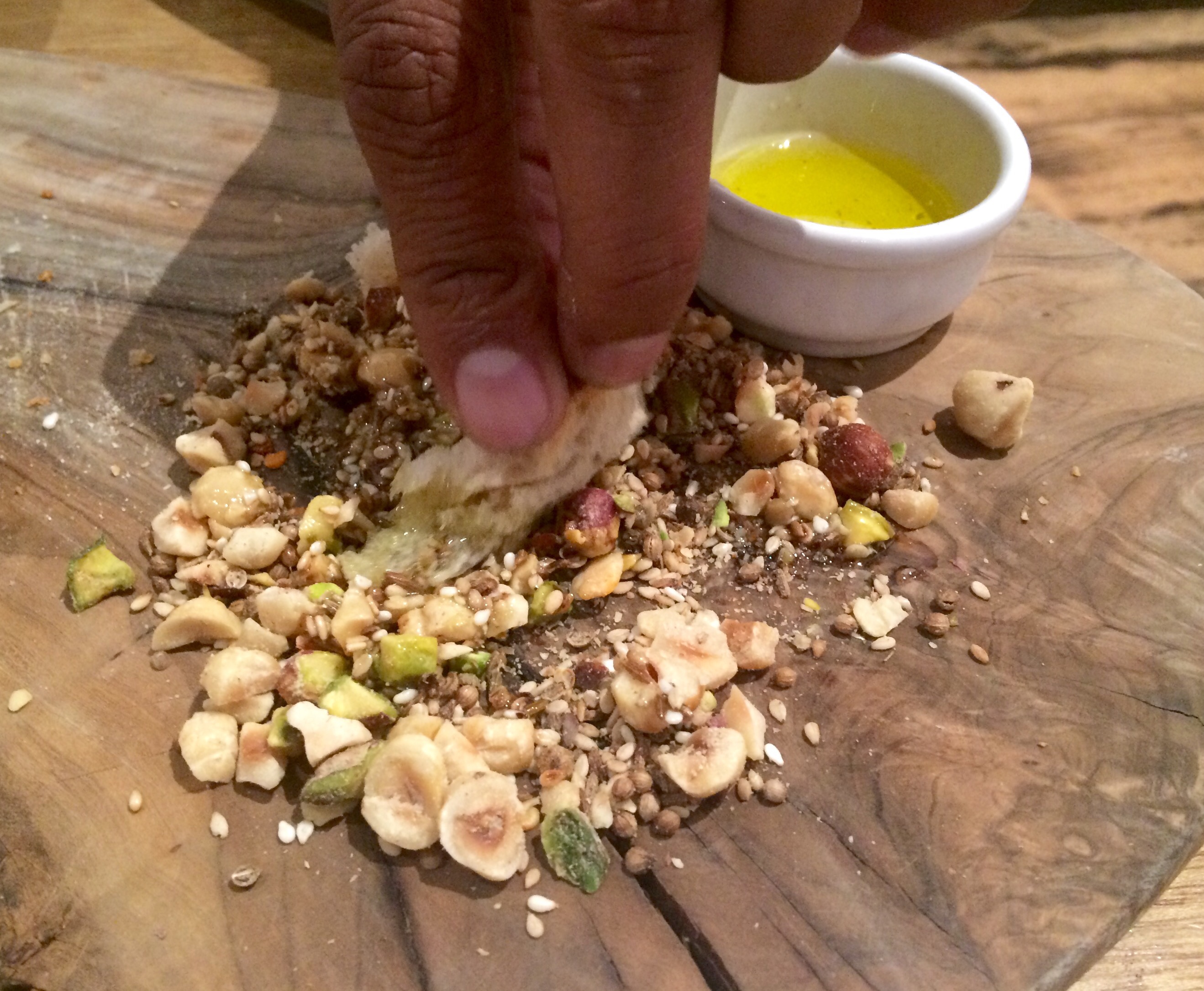This is a simple snack item consisting of ground nuts, herbs and spices served with bread and some good quality oil.