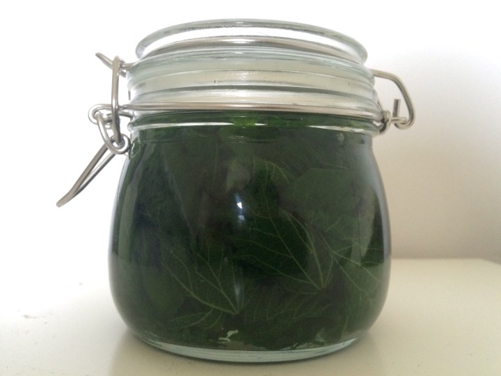 Once you have enough leaves to fill a 2 litre jug, put them in it, pour over some warm water, stir and leave to soak for about 10-15 minutes.