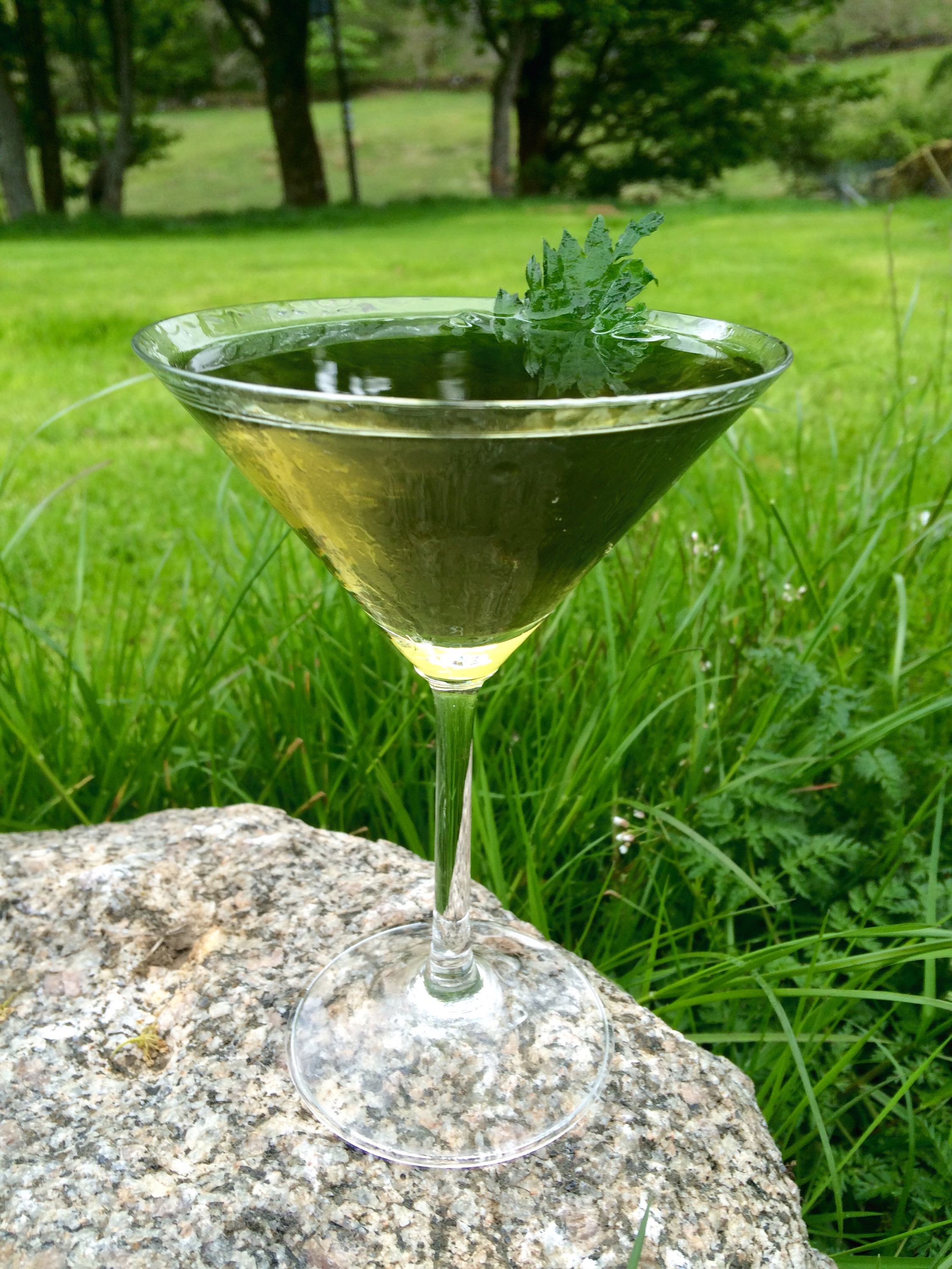 You will basically harvest young nettle leaves then soak, simmer and infuse them in alcohol with sugar to create a flavoured drink to add to your martini.