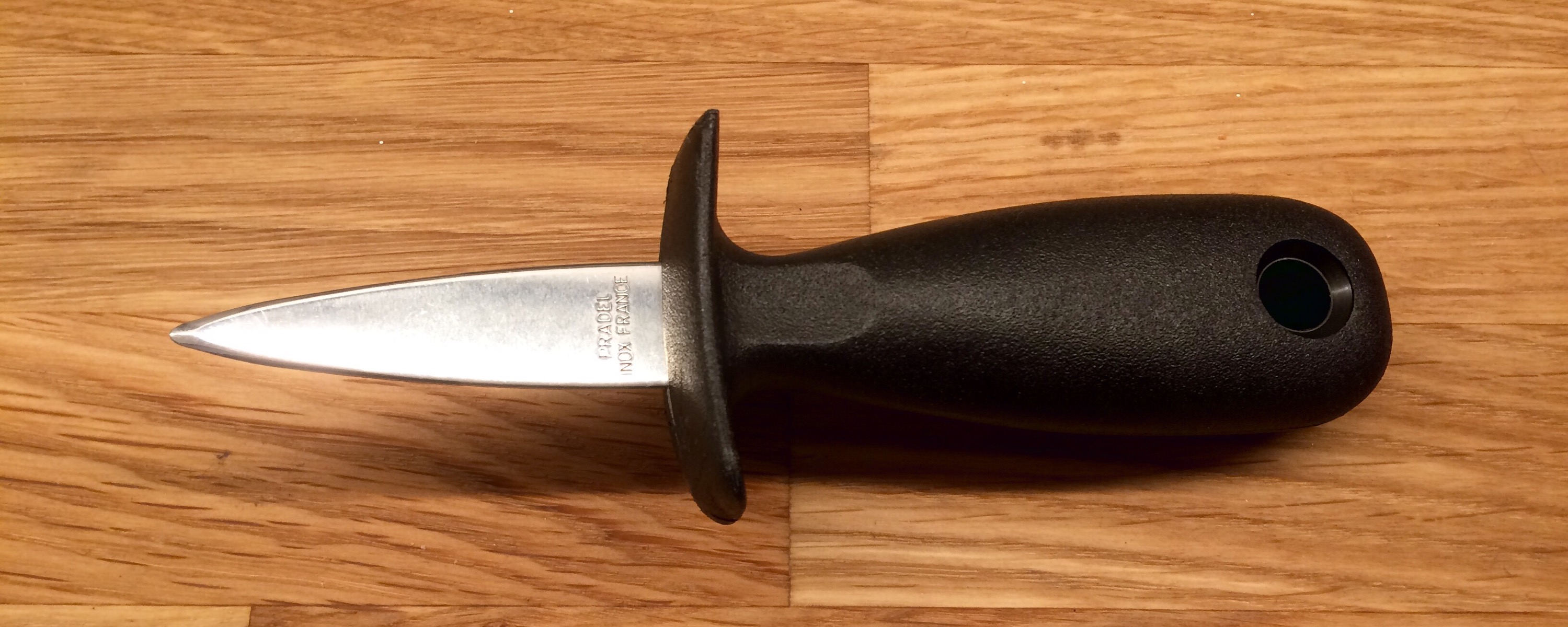 Get yourself a shucking knife (above), a tea-towel and a solid surface to work on. Have a plate nearby to place the opened oysters onto as well.