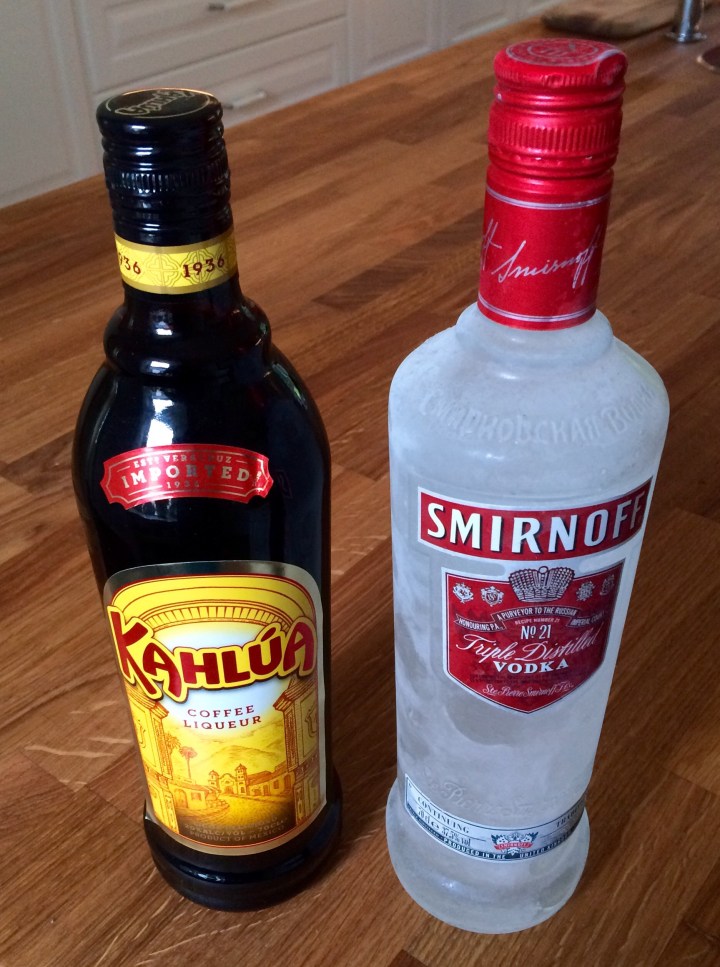 - Add 20ml coffee liqueur (or to taste – more for a sweeter drink, less for a stronger, more bitter punch-in-the-face type imbibement.