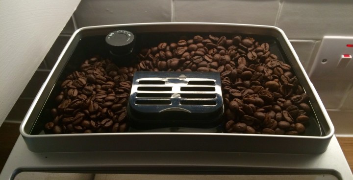 I took them out from the top of mum’s machine. I like to use three pointing out from the middle of the glass, with the seam of the bean facing upwards.