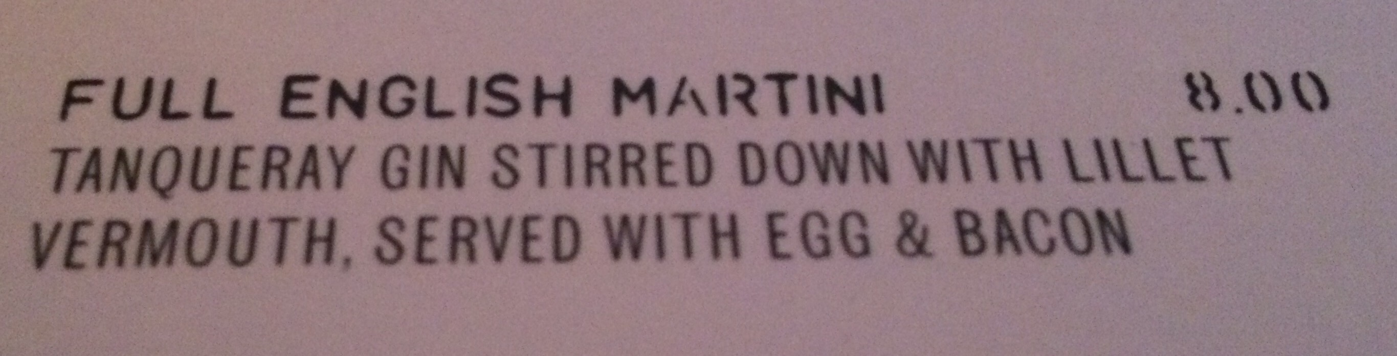 Their drink selection is also impressive. I obviously had to try their “Full English Martini”, a classic (Tanqueray and Lillet Blanc) served with egg and bacon.