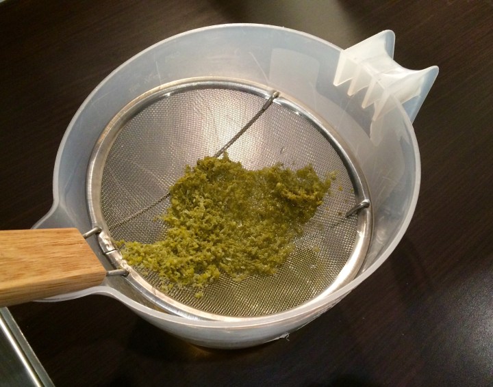 - Strain the vodka and discard the zest (squeeze it out as much as you can first)
