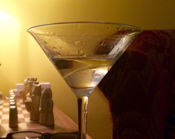 A more strategic martini, here with the Lewis Chessmen in the background.