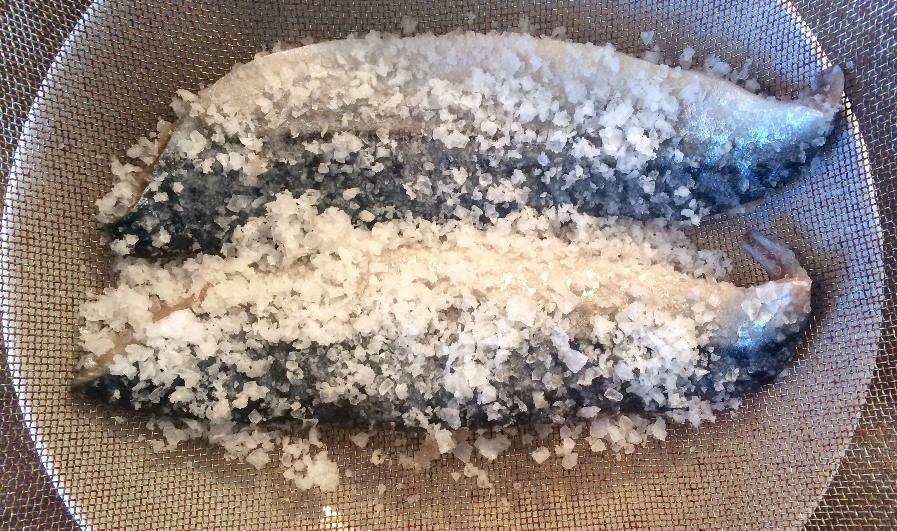 - Put the mackerel fillets in a container and cover them with the 4tbsp salt, making sure that no parts are left uncovered on either side.