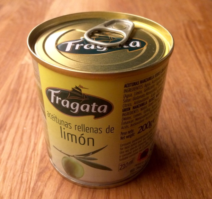I usually eat their olives stuffed with anchovies but now I’m trying out their olives stuffed with lemon.