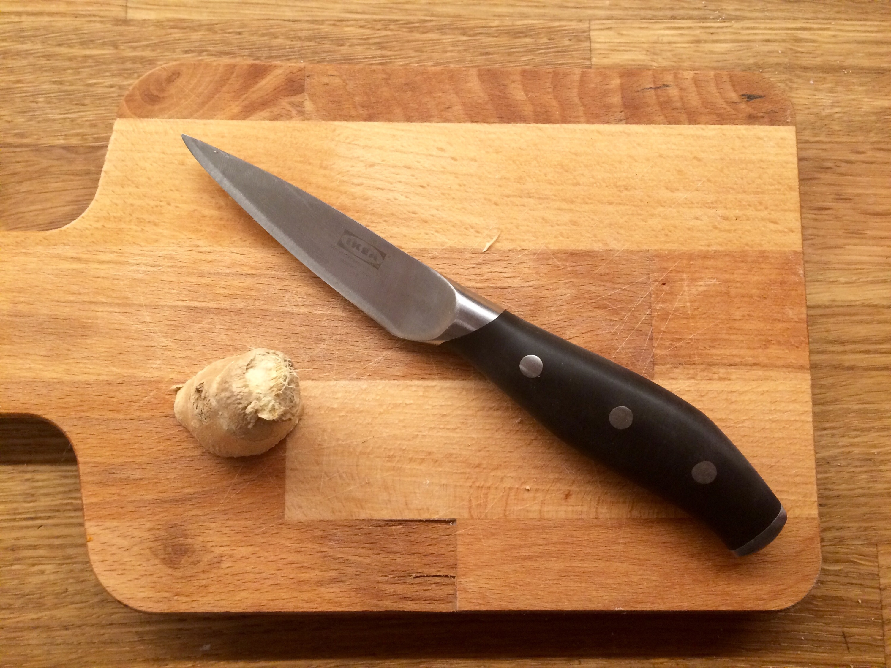 Grate a thumb-sized piece of ginger then squeeze the pulp to release the liquid.