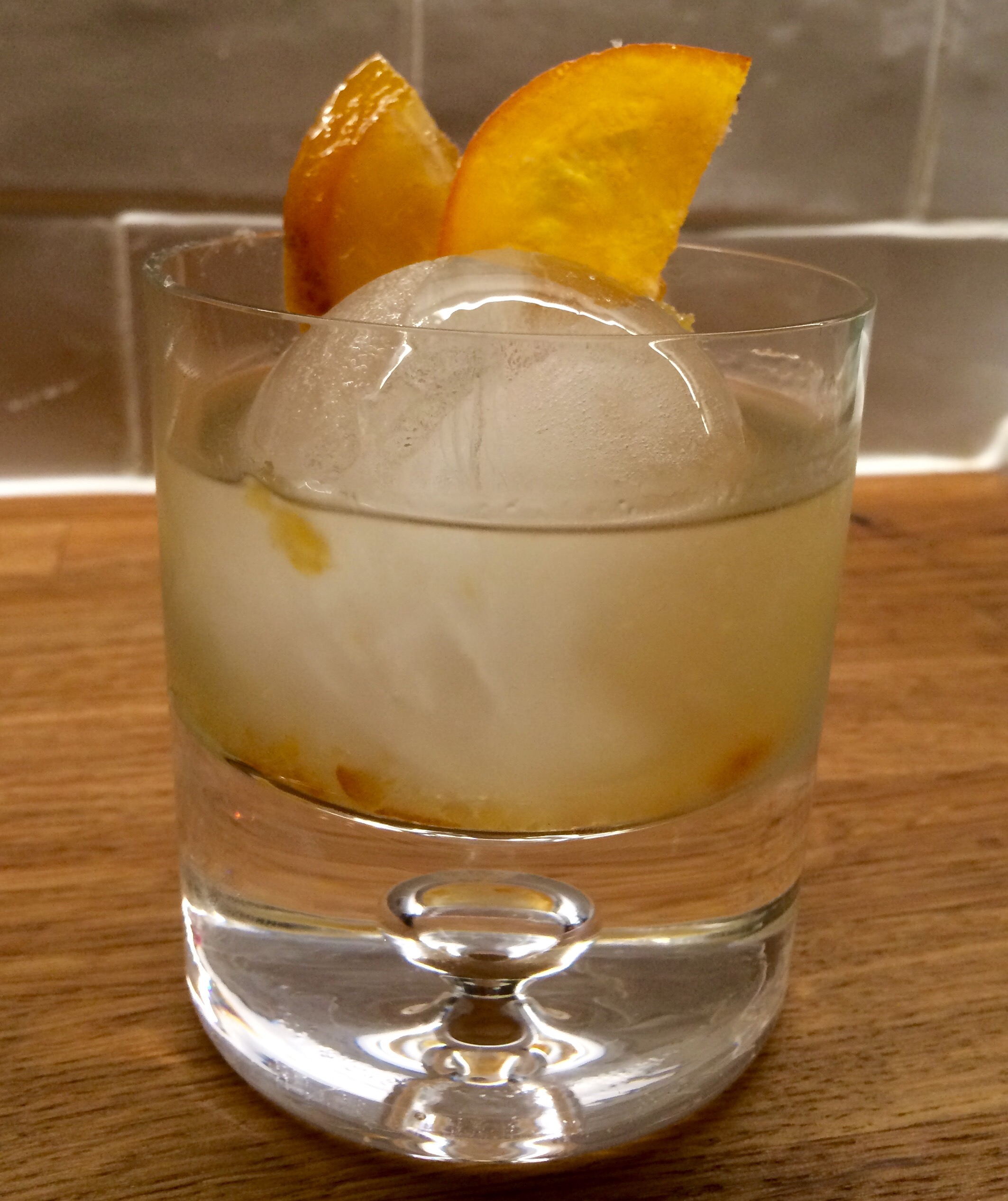 The cocktail also makes a nice shorter drink over ice. Here I used my previously purchased spherical ice makers.