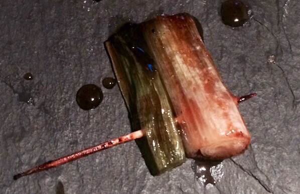 This is some fried spring onion with a soy glaze. Simple, easy and slightly unusual in the West, the recipe is here.