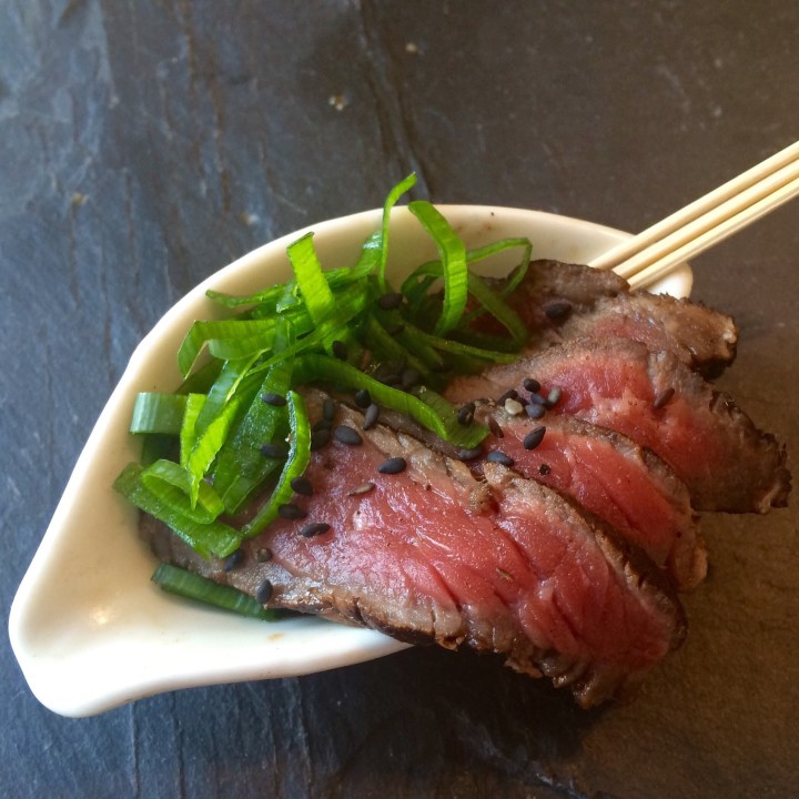It’s a bit fiddly to make for a canapé but it’s tasty if you can be bothered. The beef also goes well simply served on top of rice (especially sushi rice).