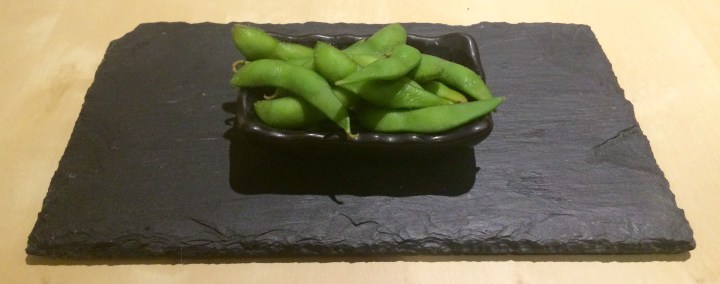 It’s fairly standard to start an Izakaya meal with edamame, here boiled in salted water for 4 minutes from frozen, drained, cooled and sprinkled with salt (or some of Laura Santtini’s Umami salt if you fancy it). There are loads of other sauces, dips and condiments you can serve them with. Try experimenting.