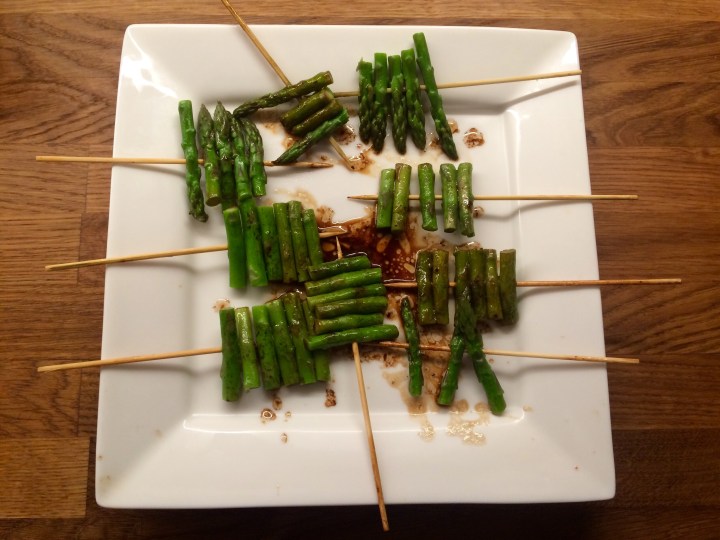 I produced these asparagus skewers with the Izakaya style in mind, even though they are not traditionally Japanese.