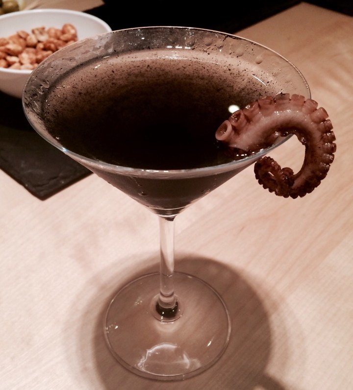 And who could forget this experimental extravaganza? It’s more seafood, this time in the form of a squid-ink martini with octopus tentacles. Tentacle martini porn is now officially a thing!
