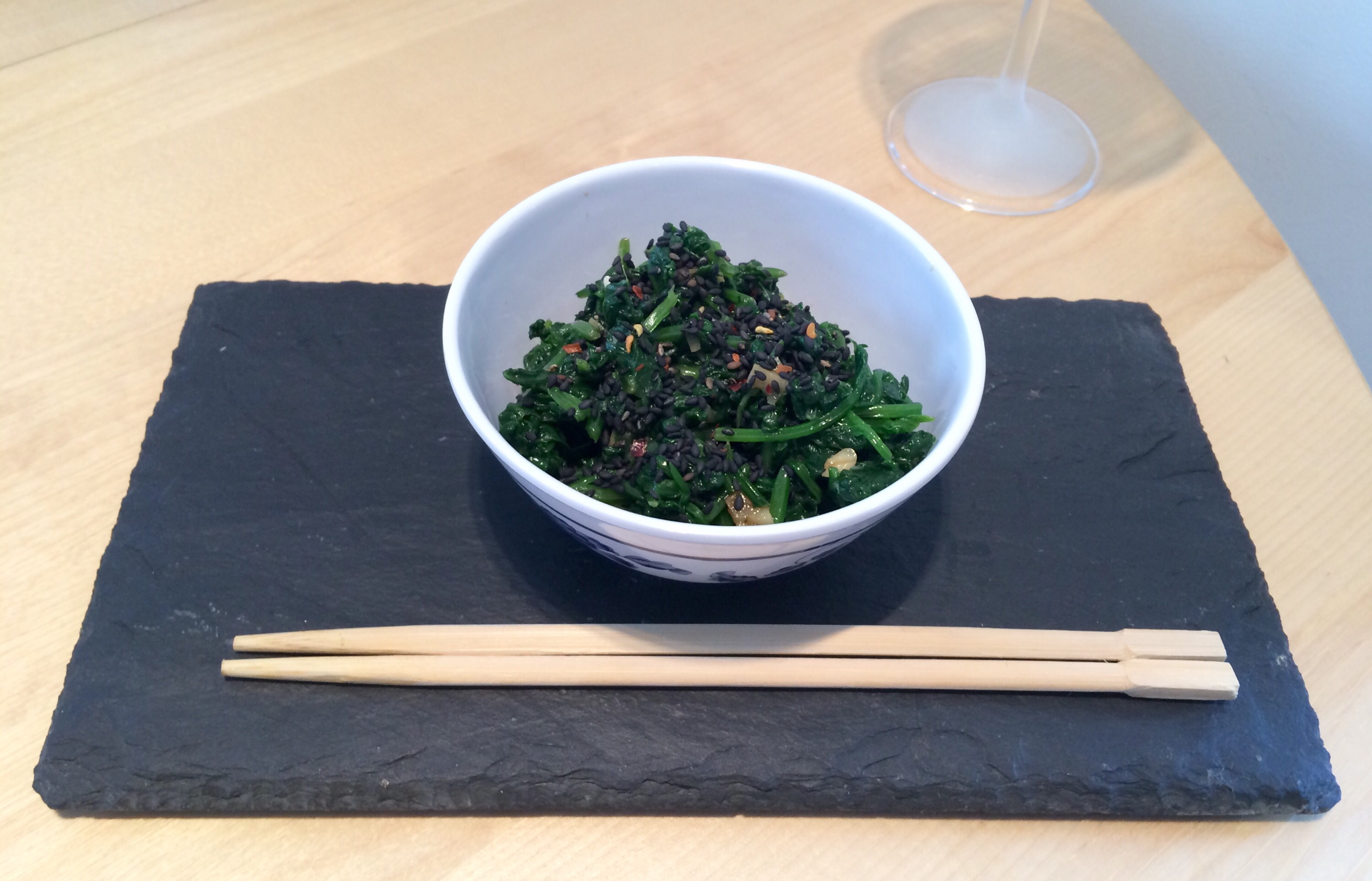 Korean-style spinach – Sigeumchi-namul is an easy accompaniment you can make in advance of serving martinis.