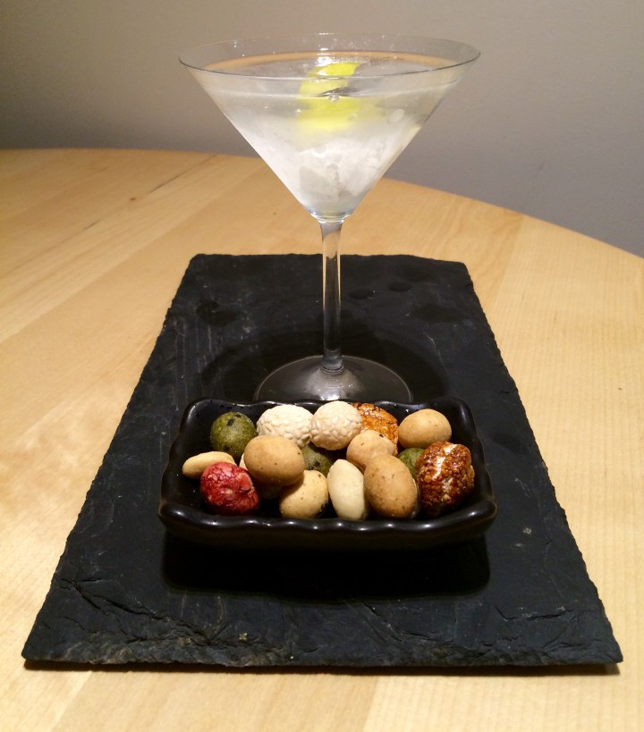 This is probably cheating but I served some deep fried squid I bought from a Chinese takeaway restaurant. No one complained. It actually worked very well. I’ve said it before, seafood goes very well with a martini. And if you’re going to dip that seafood in batter and fry it until it’s crunchy then that can only be a good thing.