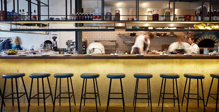 The decor in the post-warehouse bar is refined, sophisticated and somewhat retro-London, blending hard Victorian industrial with plush continental. The crowd was youngish, trendy and mostly professional. How very Shoreditch.