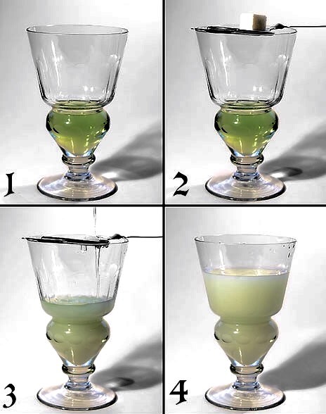 The drink was traditionally served via ‘the French method’ whereby a slotted spoon holding a sugar cube was placed over a glass containing a measure of absinthe. Cold water was then poured over the sugar cube, running into the absinthe, turning it cloudy and bringing out its complex flavours.