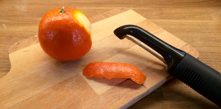 - Peel a strip of orange rind.