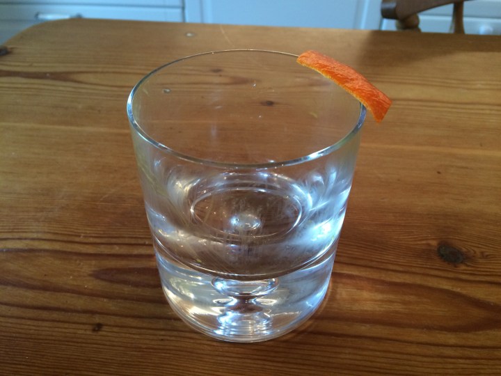 - Peel a second strip of orange rind, twist it over the glass to release a bit more oil but try not to damage it.