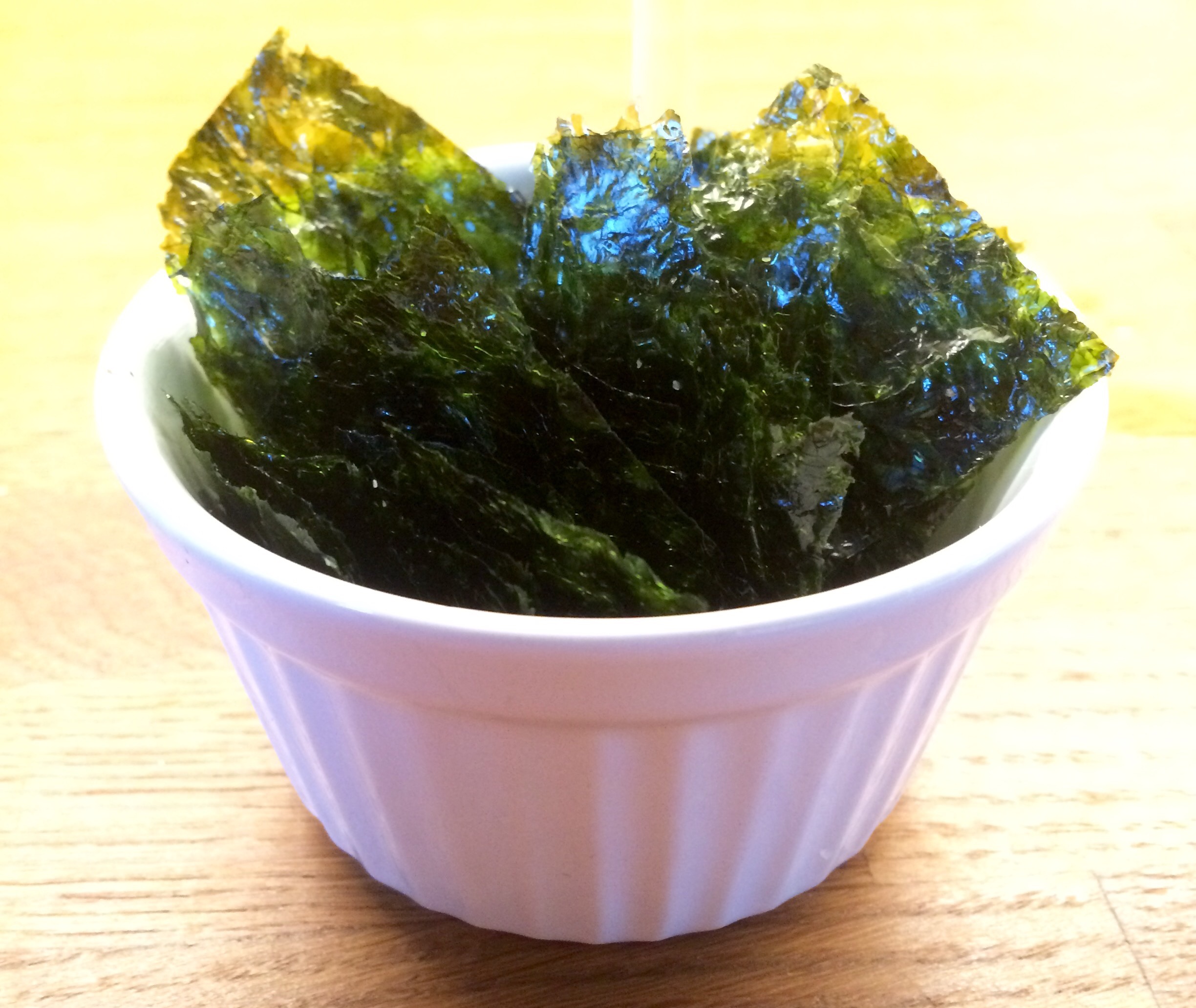 However, these nori sheets in particular have quite a high fat content so they might not be a million miles better than crisps after all. It might be worth using ordinary sushi nori sheets instead. Cut one or two into bite sized pieces before serving.