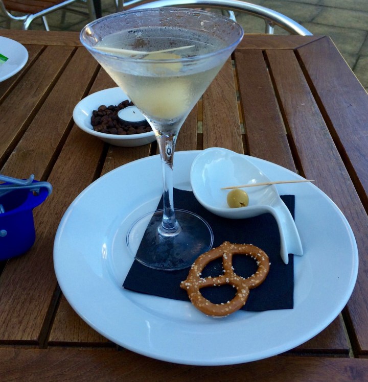 Mum and I went over the best layout for the drinks. We would serve the martinis at the bar on a plate with a small dish of olives and some miniature pretzels on the side. Additional food was also available on the menu.