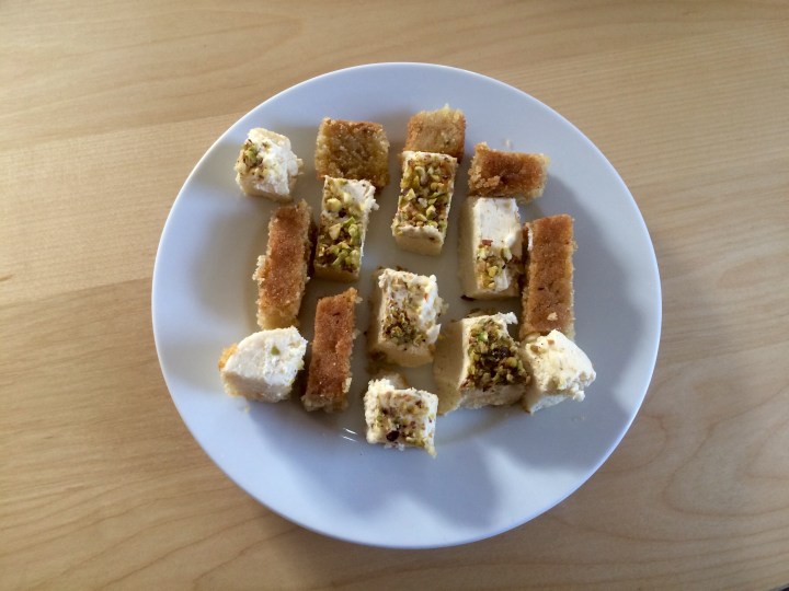 My kind neighbour made me some lovely Middle Eastern sweets which I included in the meal.