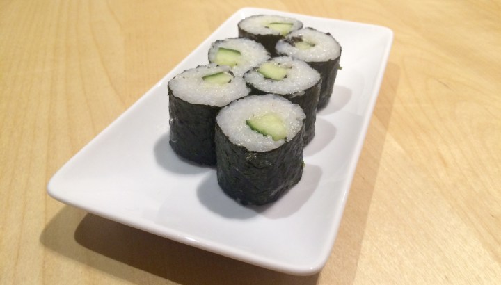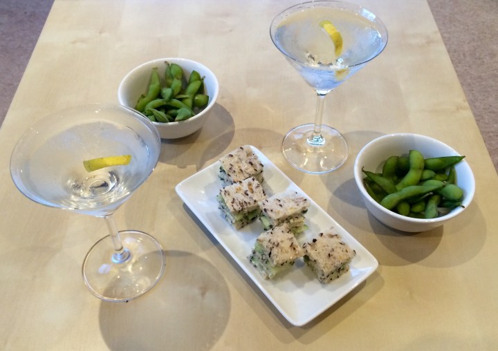 Inspired by a combination of Japanese makizushi rolls and a traditional British snack I made a triple-decker cucumber sandwich using the seaweed butter and a smear of wasabi, then cut it into small squares to serve with some martinis.