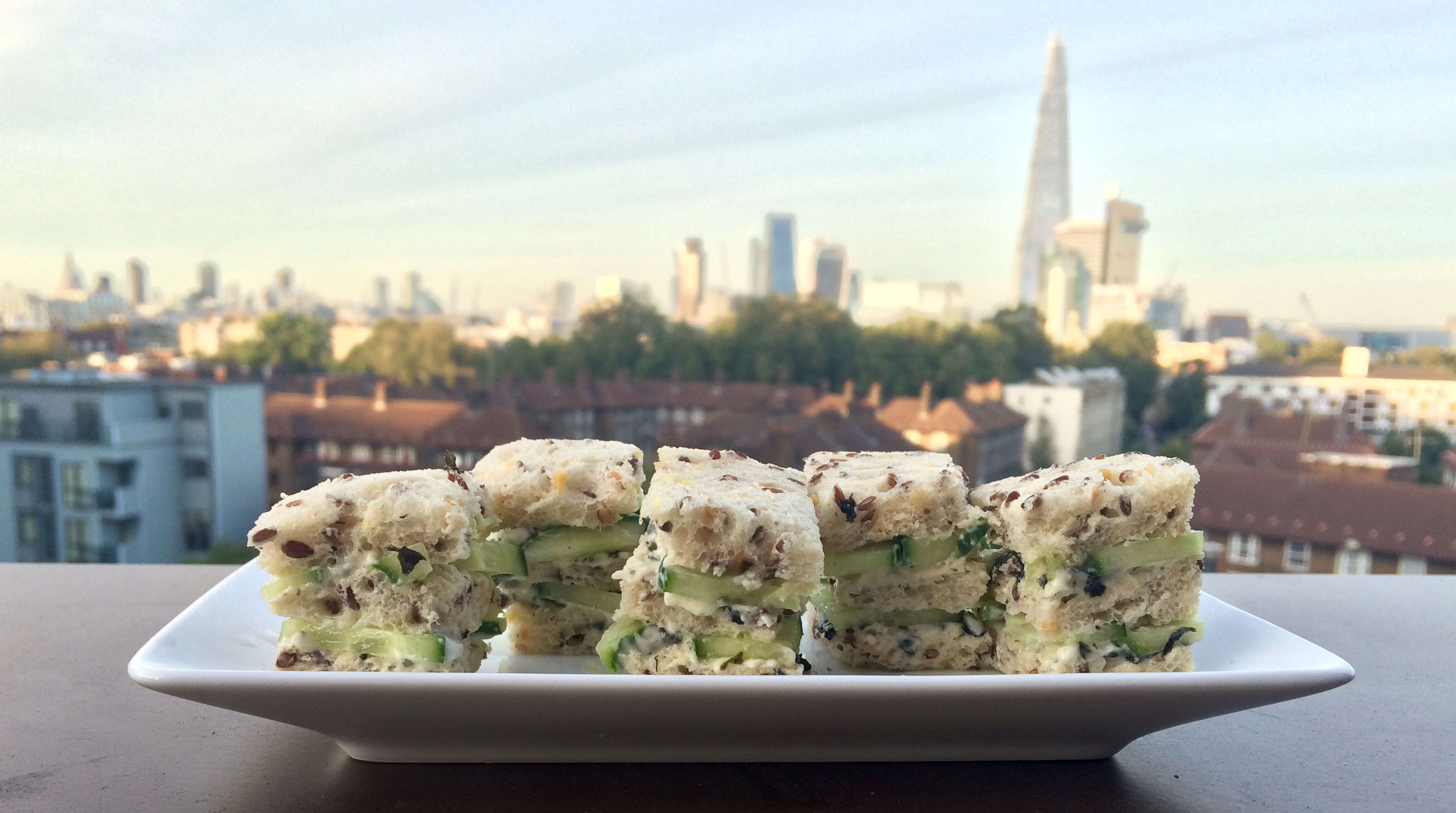 Inspired by a combination of Japanese makizushi rolls and a traditional British snack I made a triple-decker cucumber sandwich using the seaweed butter and a smear of wasabi, then cut it into small squares to serve with some martinis.