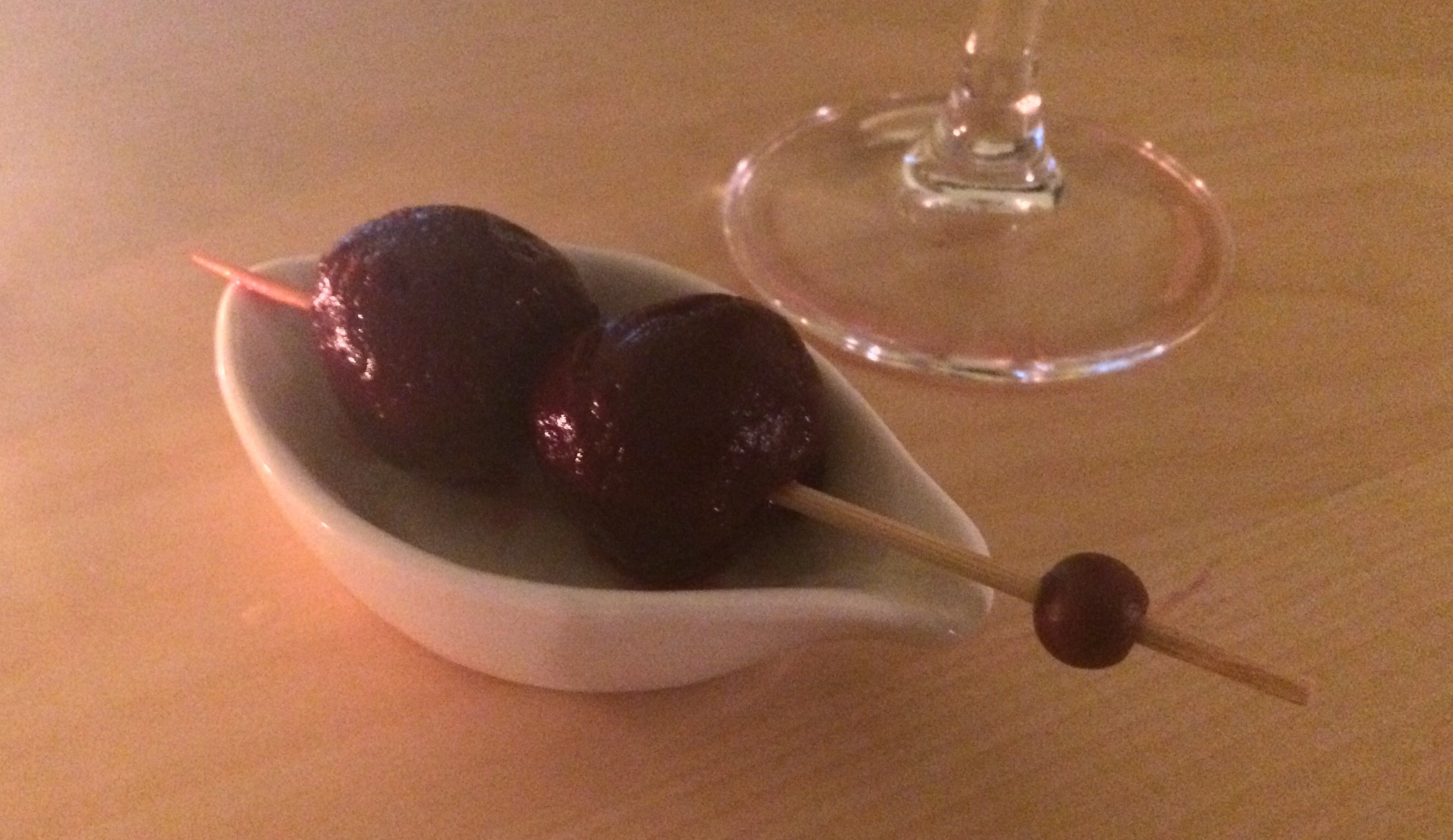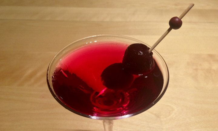 The Beet Up Gibson uses pickled baby beetroot instead of pickled onion and is quite striking due to its colour.
