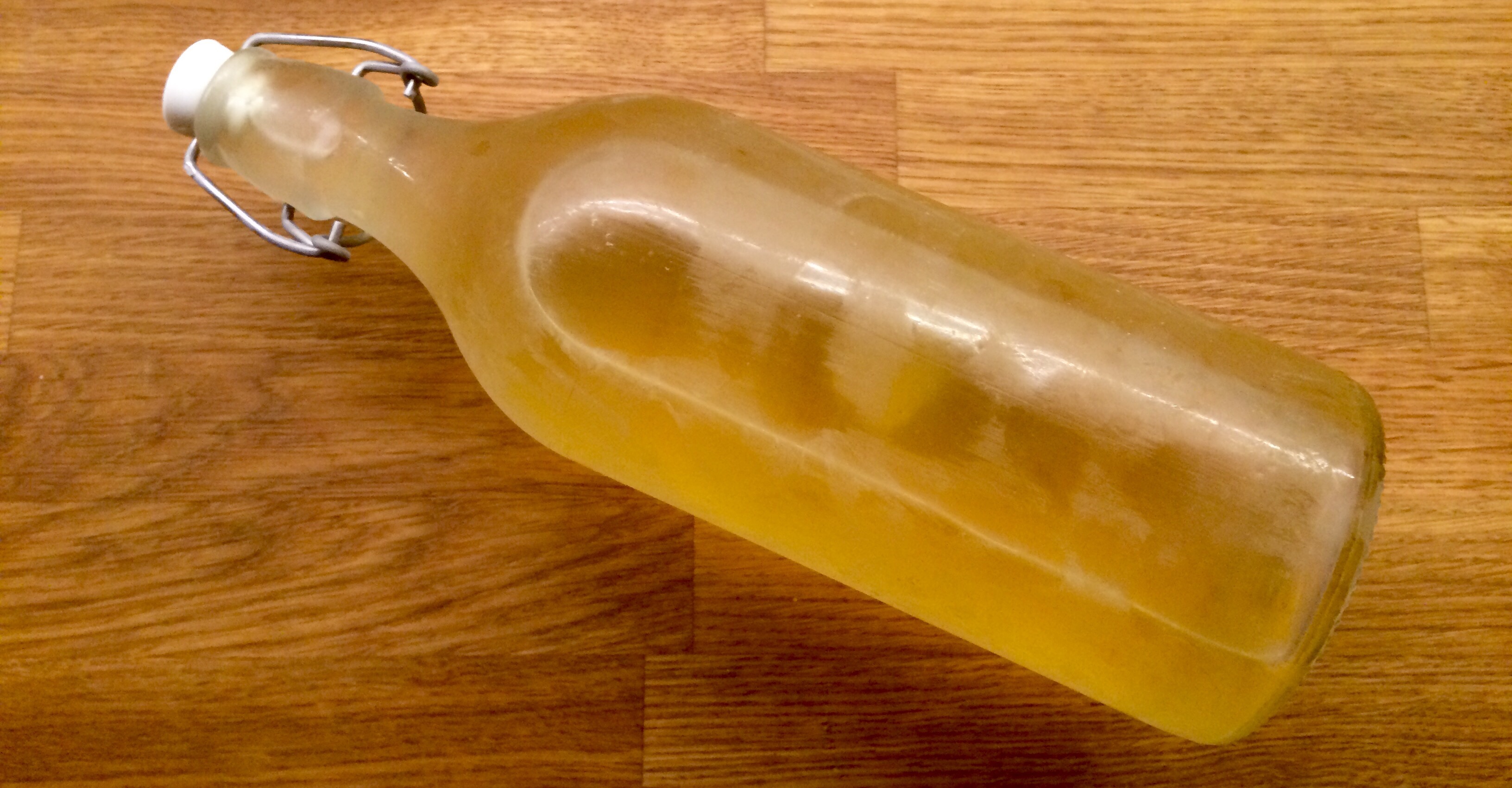 Sometime in the last few years mum made some limoncello with vodka and lemon rind then left it to season. Obviously we forgot about it and it even managed to accompany us undetected through a house-move. I’m not quite sure how this happened but there you go.