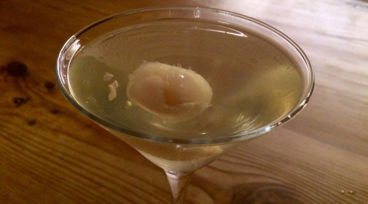Here is a late-night martini I served with some chocolate-covered almonds.