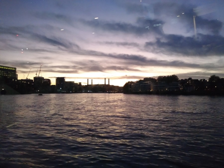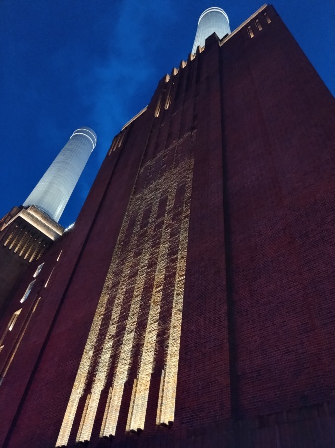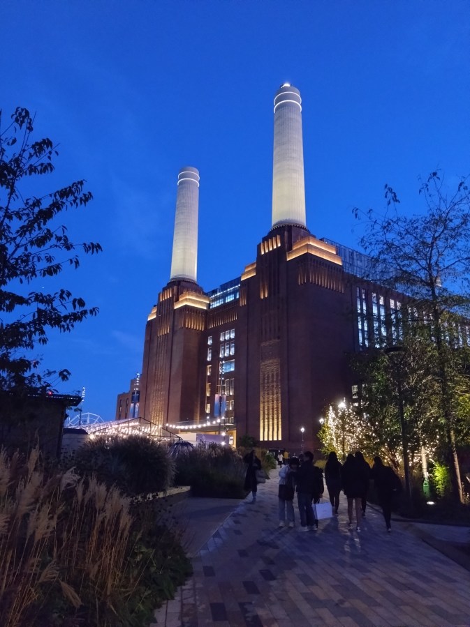Upon reaching the pier at Battersea Power Station, the sun had set. From now on is the best time to see the exterior of the building in her renovated prime.