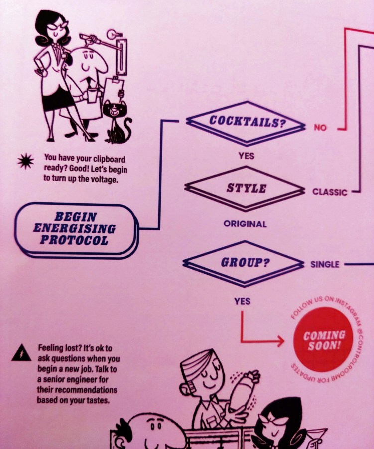 The menu has been thoughtfully crafted to continue the theme, and is contained in a metallic, engineering binder. It also contains humorous artwork in the style of Cold War era instructional pamphlets containing historical insight on the building. It actually left me wanting more. I wanted embellished details, eyewitness accounts and the stories of the many talented brains that kept this facility running for so many years – perhaps something for future iterations.